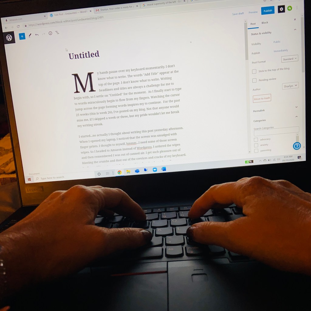 My hands pause over my keyboard momentarily. I don’t know what to write. The words “Add Title” appear at the top of the page. I don’t know what to write. Writing headlines and titles are always a challenge for me to begin with, so I settle on “Untitled” for the moment. As I finally start to type to words miraculously begin to flow from my fingers. Watching the cursor jump across the page forming words inspires my to continue. For the past 25 weeks (this is week 26), I’ve posted on my blog. Not that anyone would miss me, if I skipped a week or three, but my pride wouldn’t let me break my writing streak.
