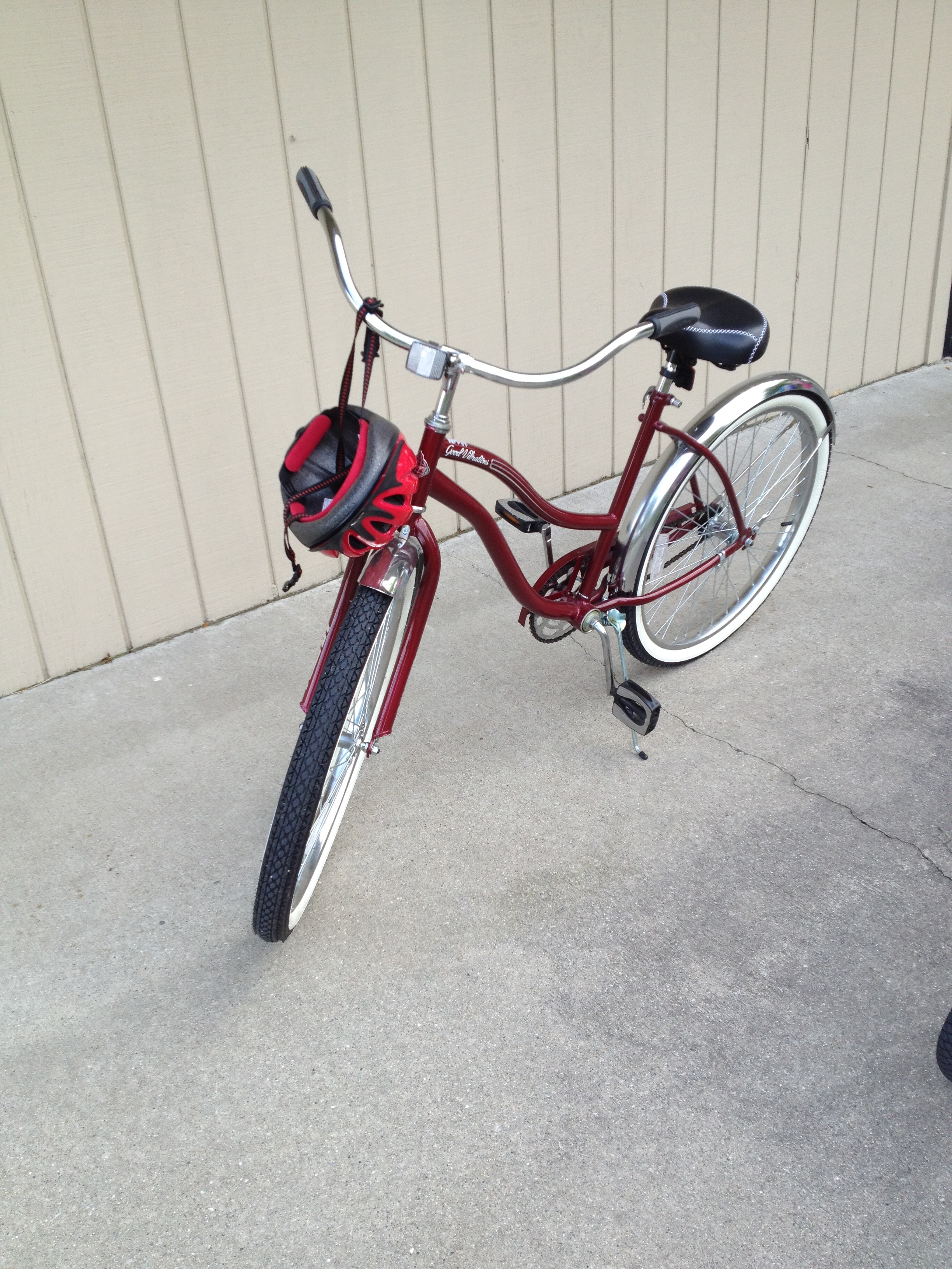 As a young girl I have fond memories tooling around on my banana bike with my sister and friends. The wind in our faces, the sun on our backs we popped wheelies and rode with no hands. We took our bikes everywhere. I remember saving up my babysitting money to purchase a powder-blue ten speed bike with the word “Trans Am” written on the frame and racing handle bars. I thought I was so cool on that bike until only a few years later when I got my coveted driver’s license. I don’t know where that bike is these days. For awhile I did have a mountain bike, although I never did ride it on any mountains or for that matter any trails of any sort. I pulled it out of the garage last summer when my oldest finally learned to ride a two-wheeler without training wheels. Unfortunately, only one of the hand brakes worked, the front tire was flat, the gears rusted and the seat a little wobbly. I persevered though and via a you tube video actually replaced the tube in the tire and fixed the breaks. I greased the gears, but was never able to get the seat to quit twisting around as I tried to ride.